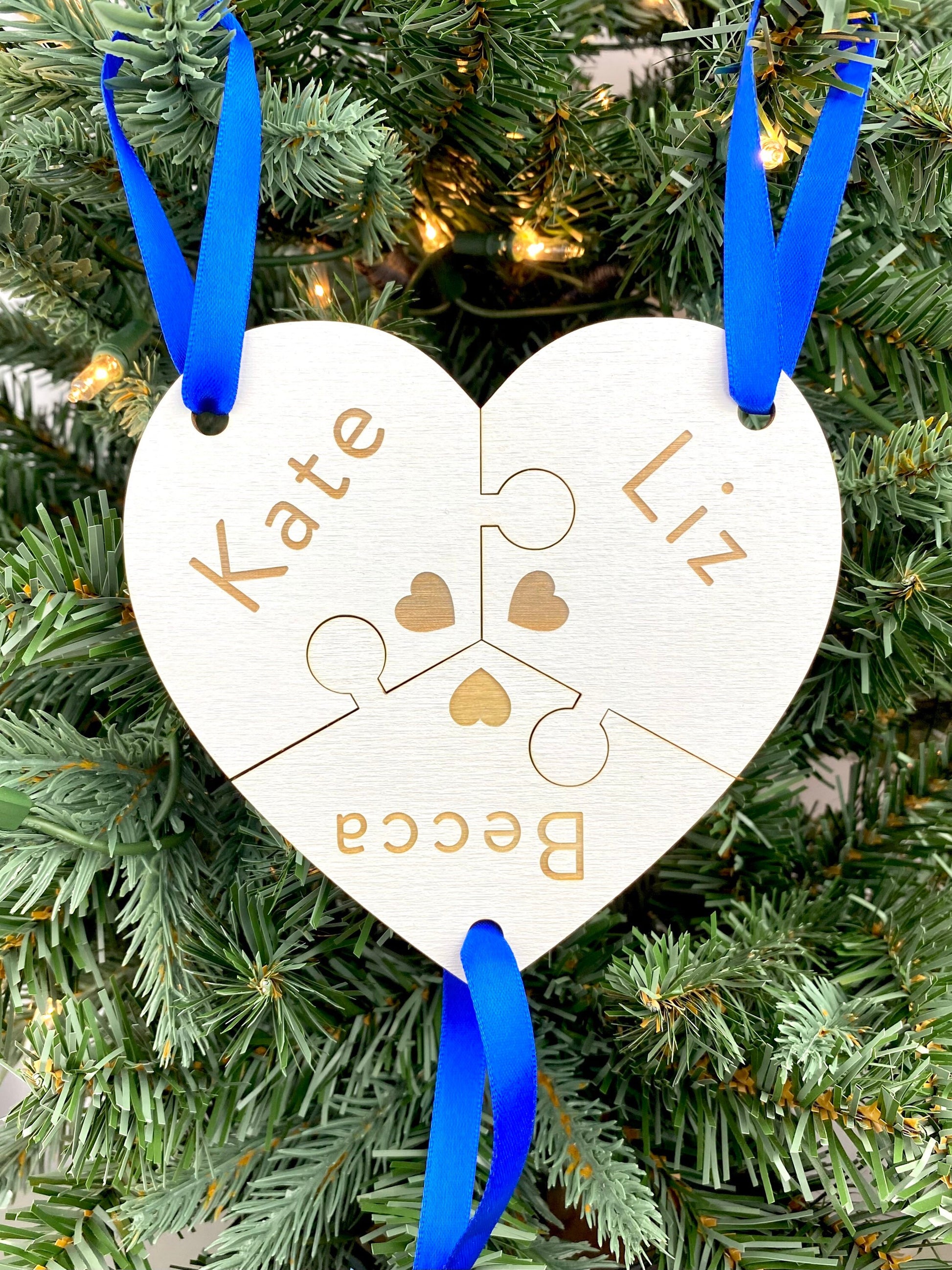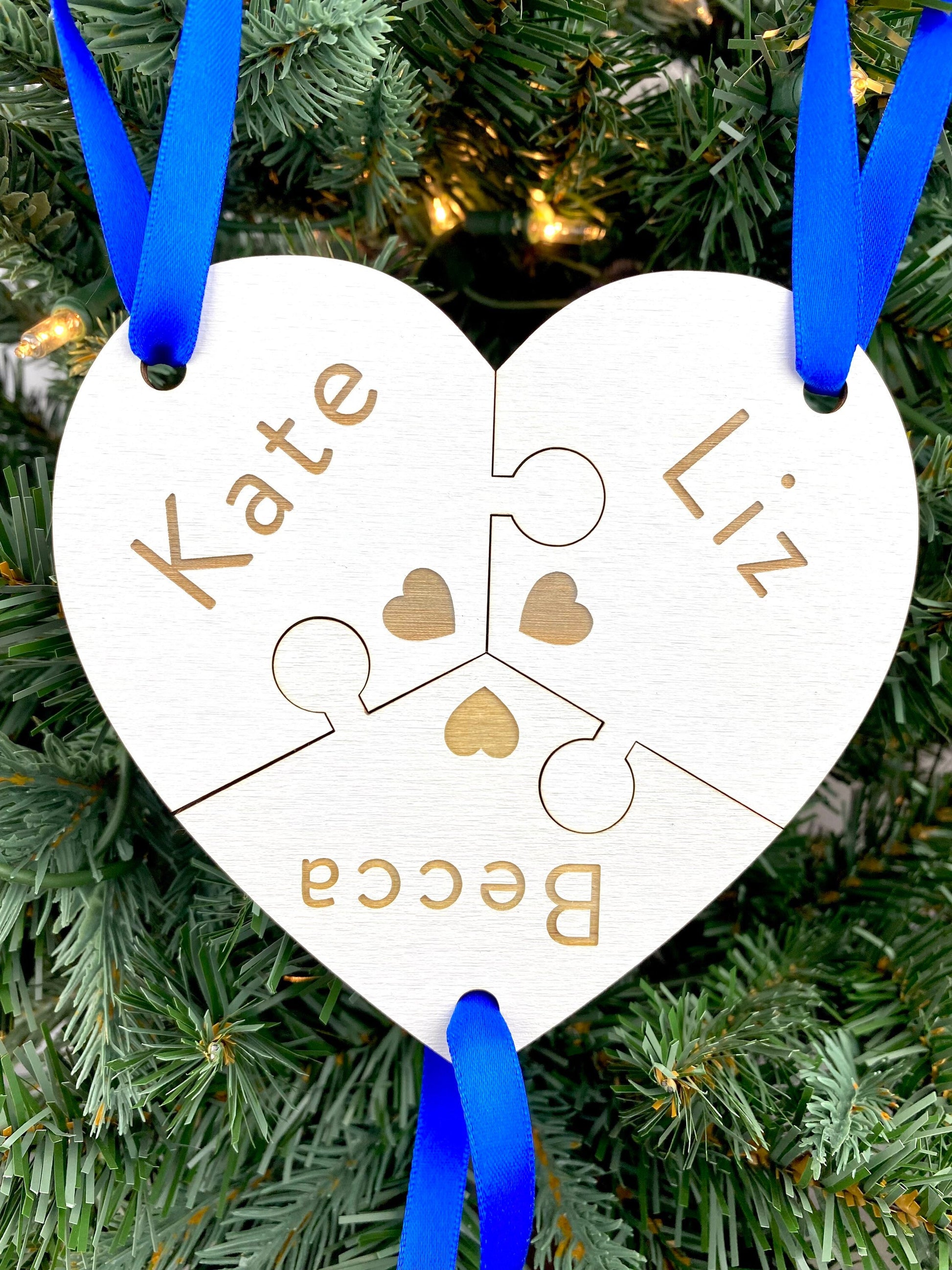 Custom Names Best Friends Heart Ornament | Three Piece Ornament | 90s Themed Ornament | 2024 Ornament