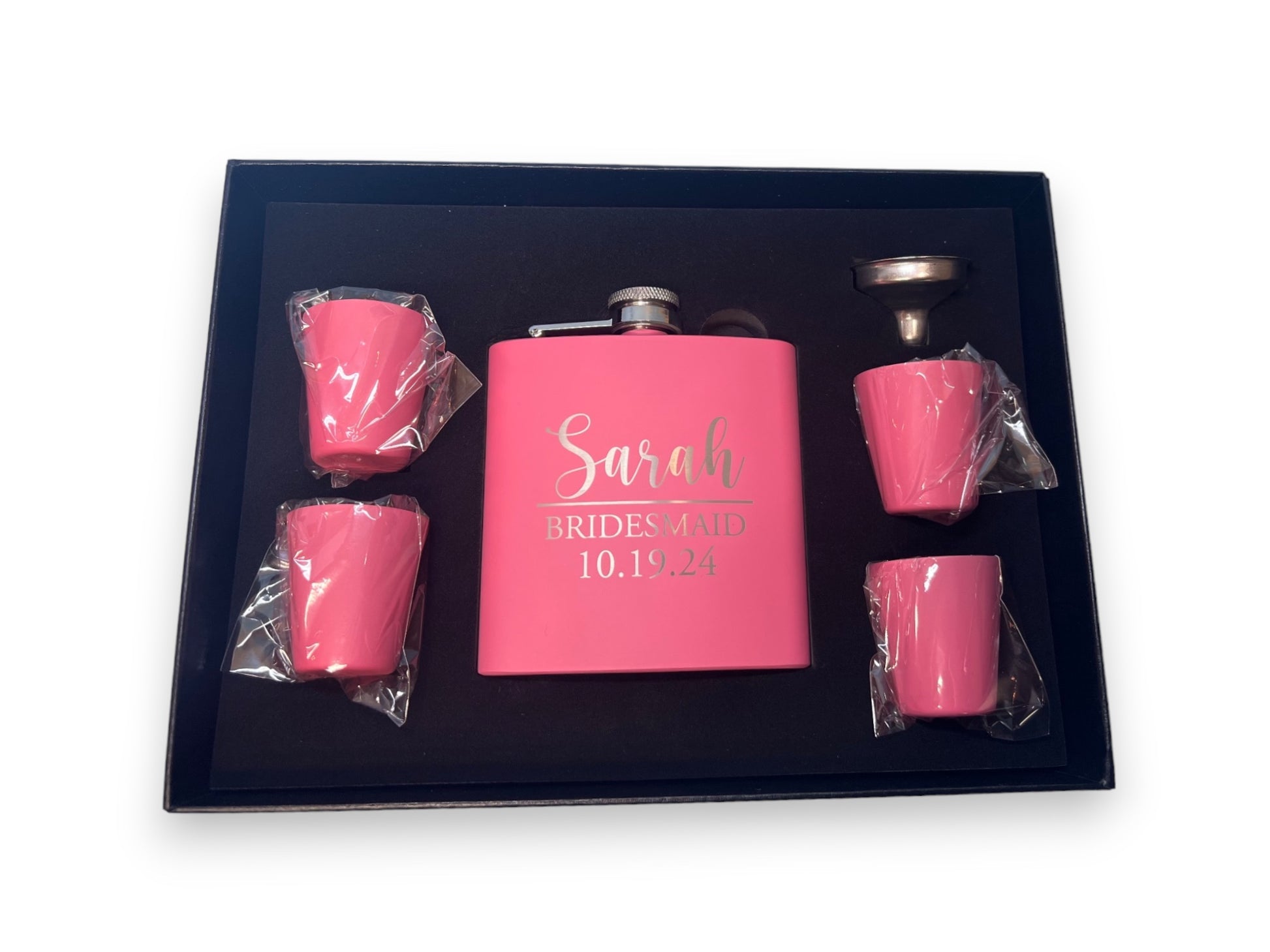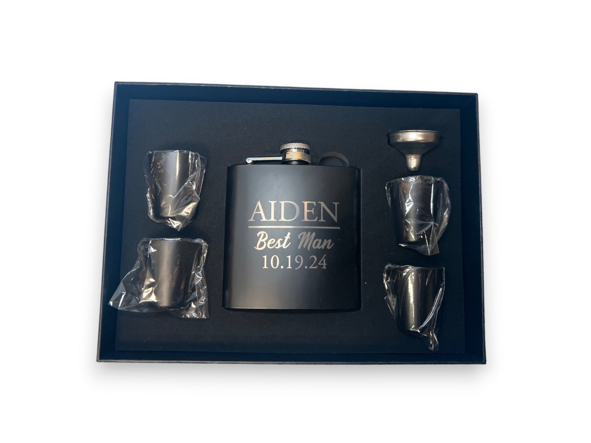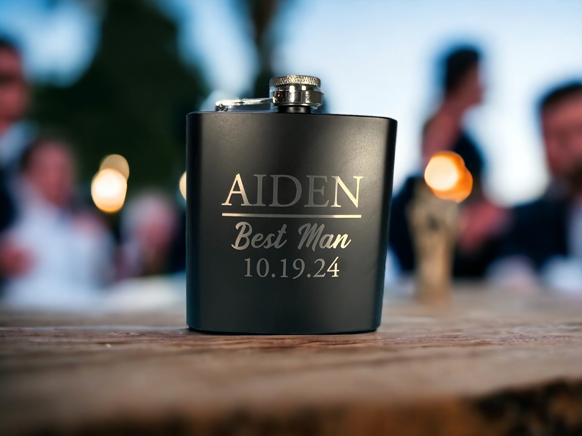 Elevate your wedding celebration with our personalized engraved flasks, the perfect gift for groomsmen or bridesmaids. Crafted with precision and care, each flask boasts elegant engraving of names, wedding date, or custom designs, creating a timeless keepsake. Cheers to everlasting memories with this thoughtful token of appreciation for your closest friends and family.