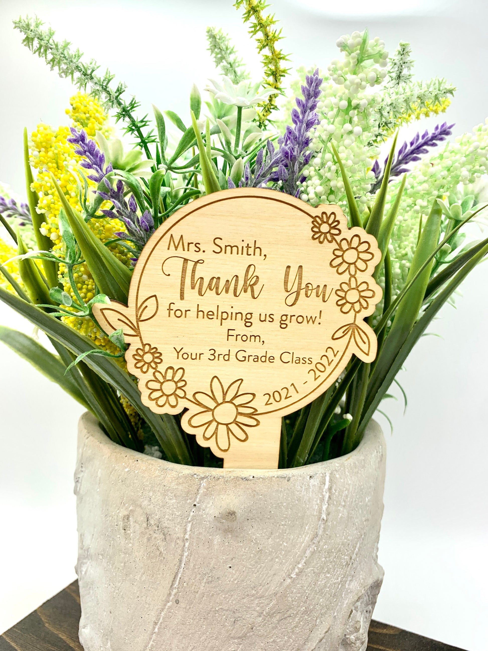 Teacher Flower Stake Gift | Teacher End of Year Gift | Daisy Design | Plant tag for Teachers | Succulent Tag