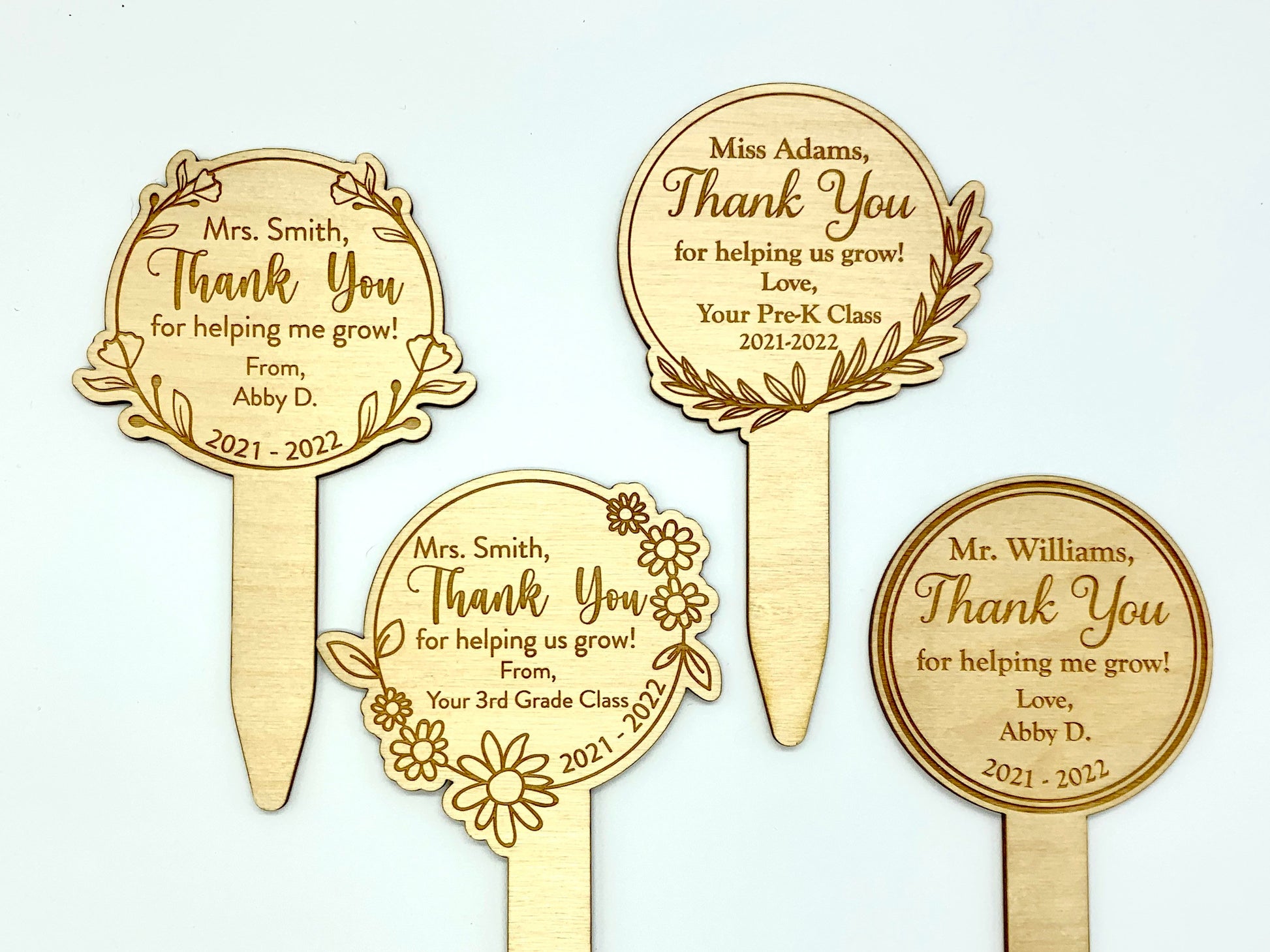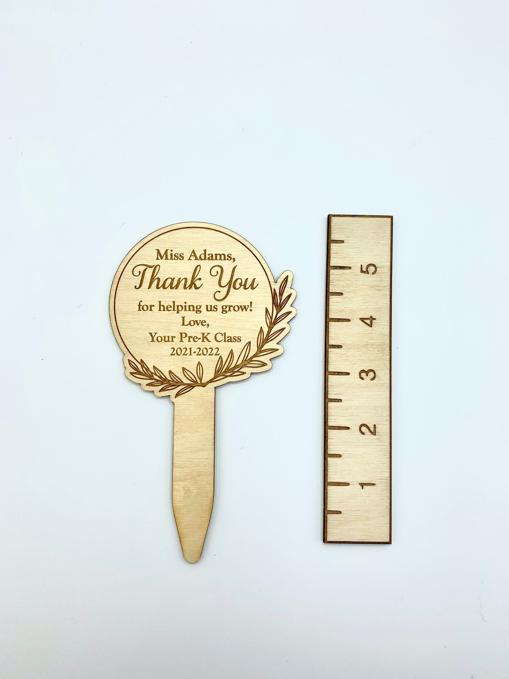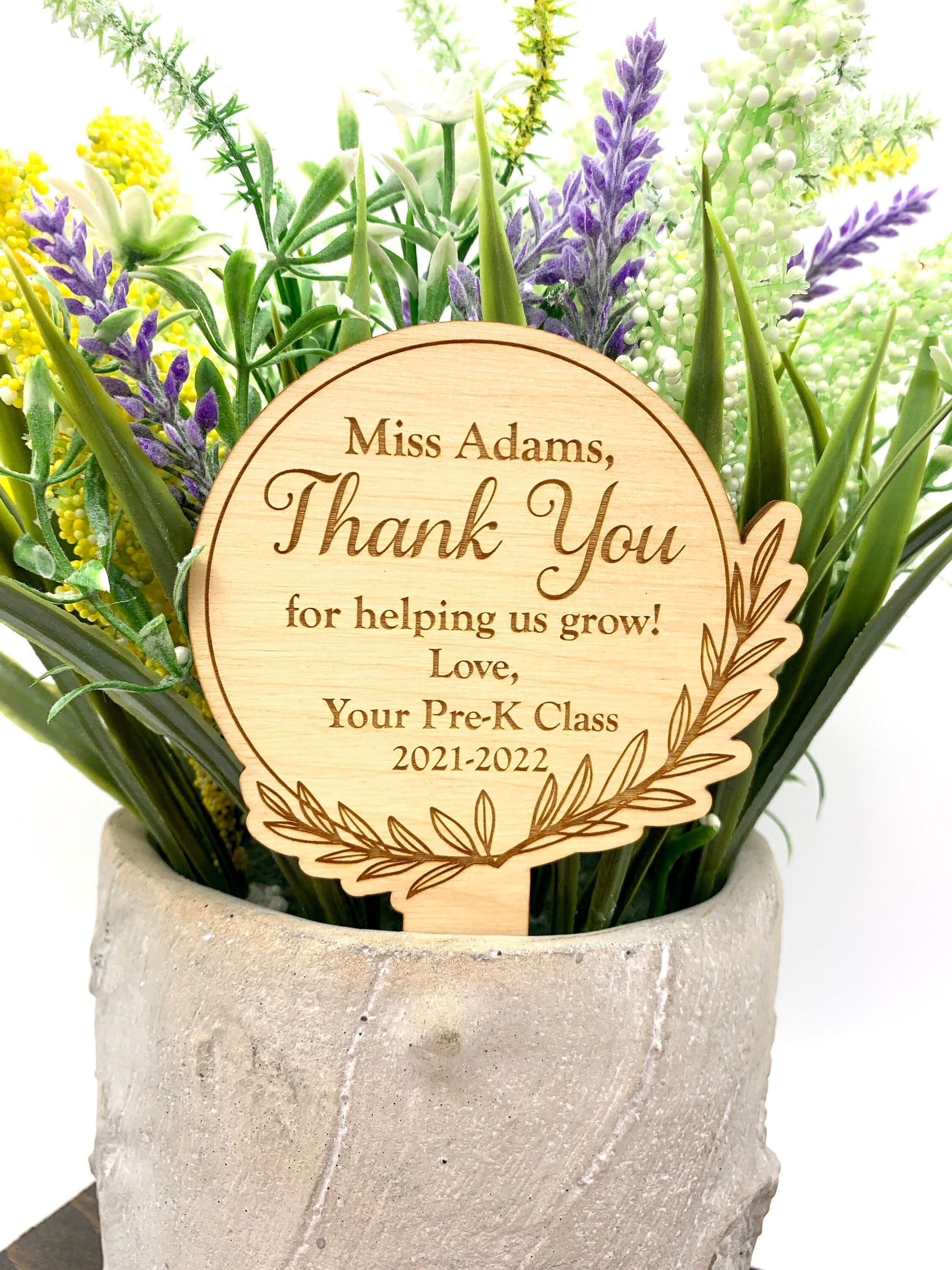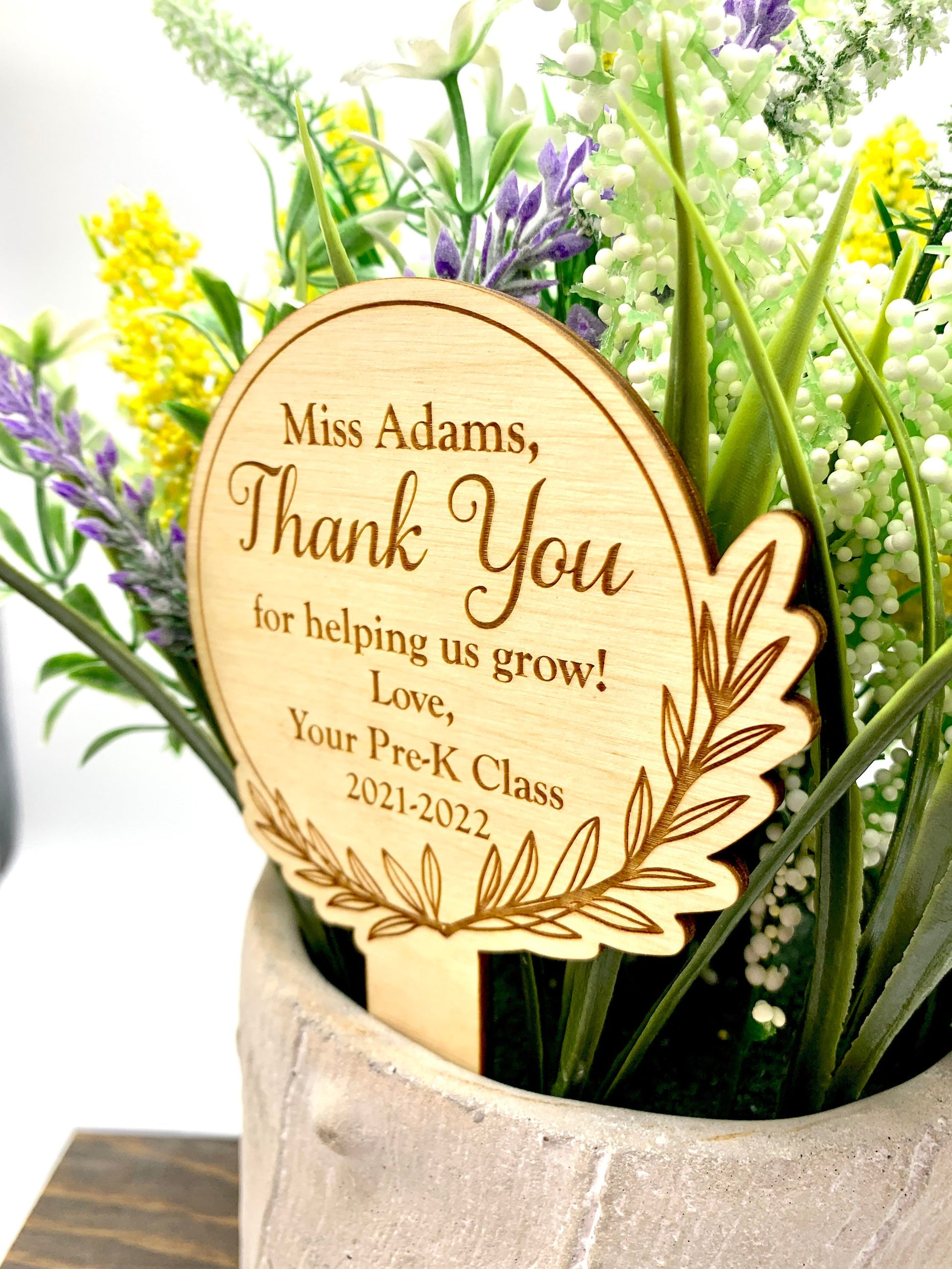 Teacher Flower Stake Gift | Teacher End of Year Gift | Leaf Design | Thanks for helping me Grow | Succulent Tag